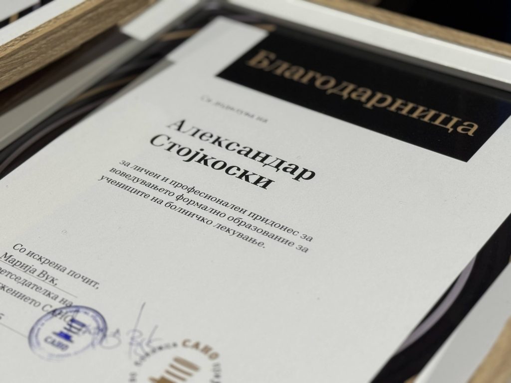Стојкоски упати искрена благодарност до Здружението САНО, до Министерството за образование и наука, како и до сите лекари, професионалци и хумани луѓе кои секојдневно докажуваат дека хуманоста нема граници.