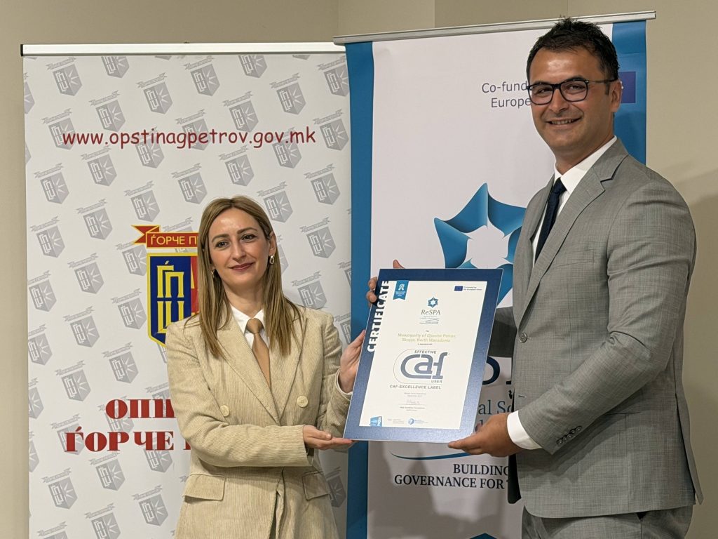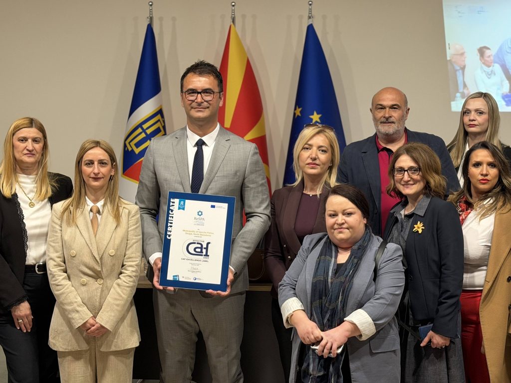 Општина Ѓорче Петров се стекна со „CAF Effective User Label“ – престижна европска ознака која ја потврдува успешната примена на високи стандарди за управување со квалитет во јавната администрација.