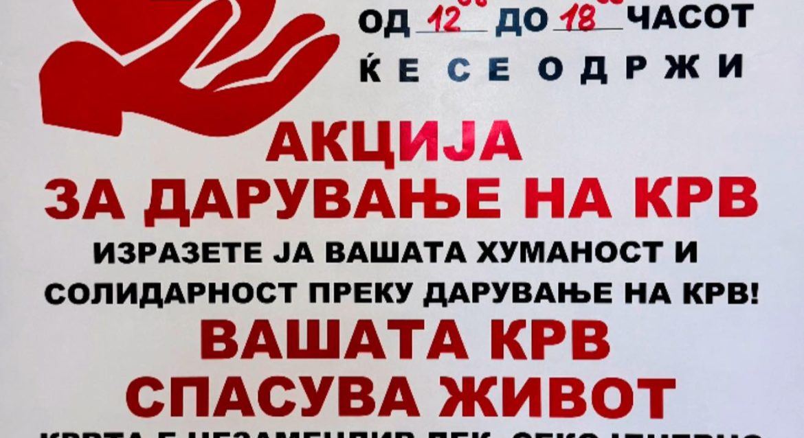 На 12 март 2026 година (четврток) во Општина Ѓорче Петров ќе се одржи крводарителска акција во рамки на Планот за…